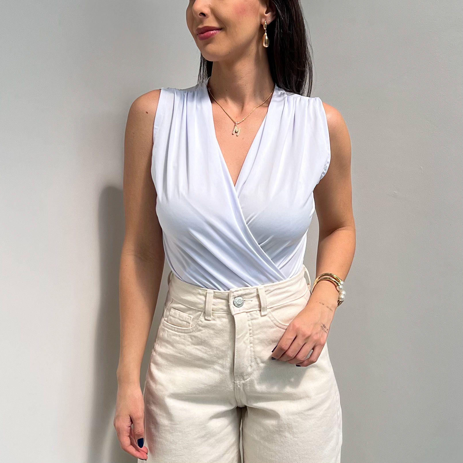Prático e versátil, confeccionado em tecido que estica, não amassa e não precisa passar – perfeito para o dia a dia. Possui presilha na parte inferior para maior conforto e praticidade, além de alça larga, ideal para usar com sutiã sem preocupação.