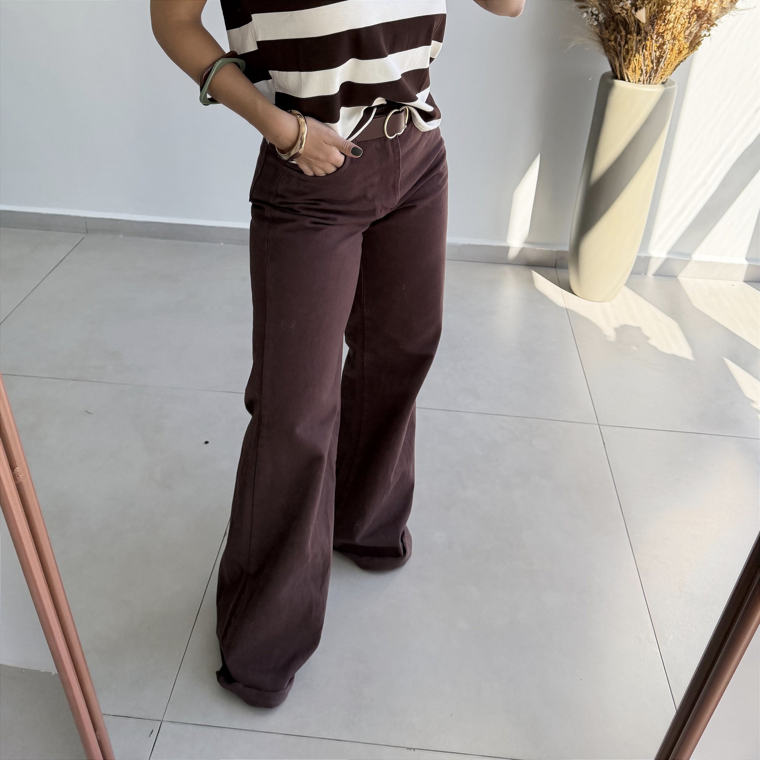 Moderna, elegante e super atual, a calça jeans marrom wide leg é aquela peça-chave que transforma qualquer look!