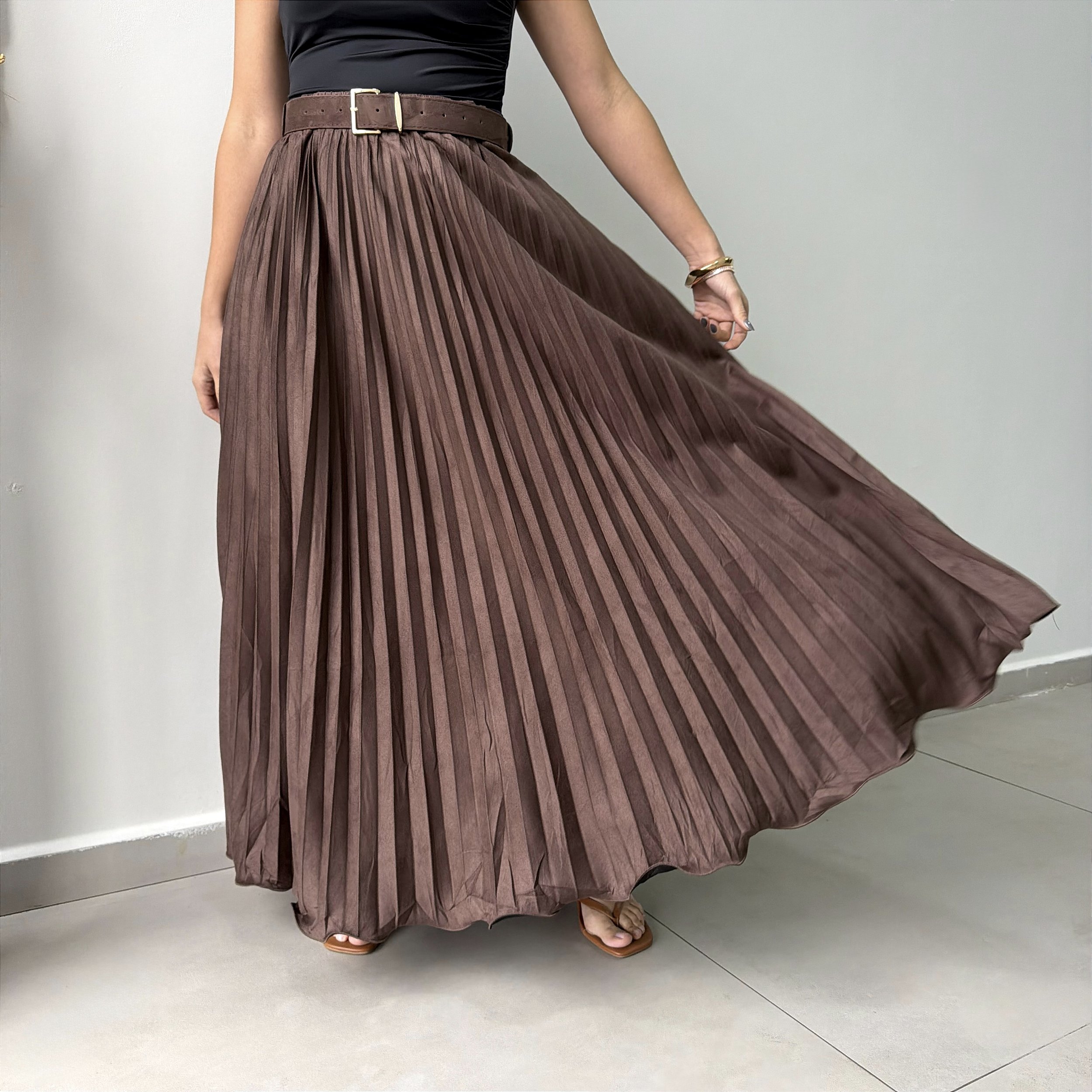 Saia Plissada em Suede